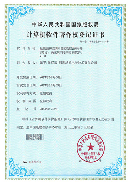 計算機軟件著作權:高速DSP同頻控制軟件